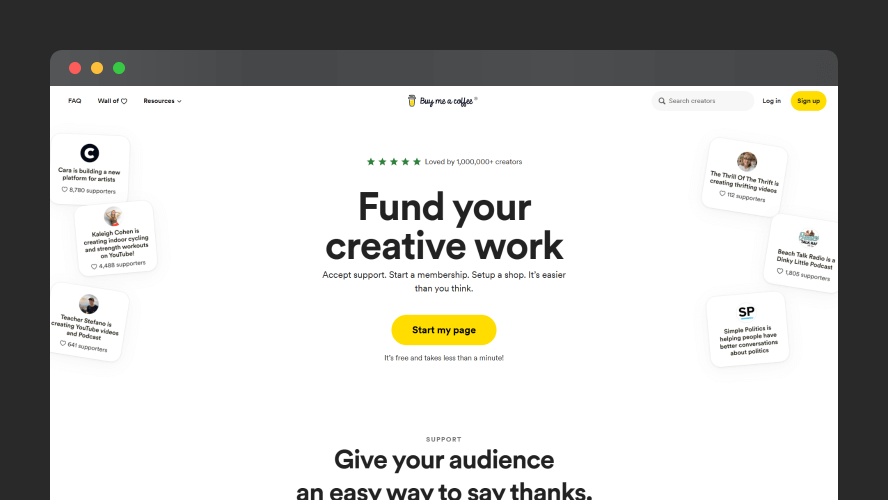 一次性支持:允许用户通过平台进行一次性付款,向他们喜欢的创作者表达支持。
